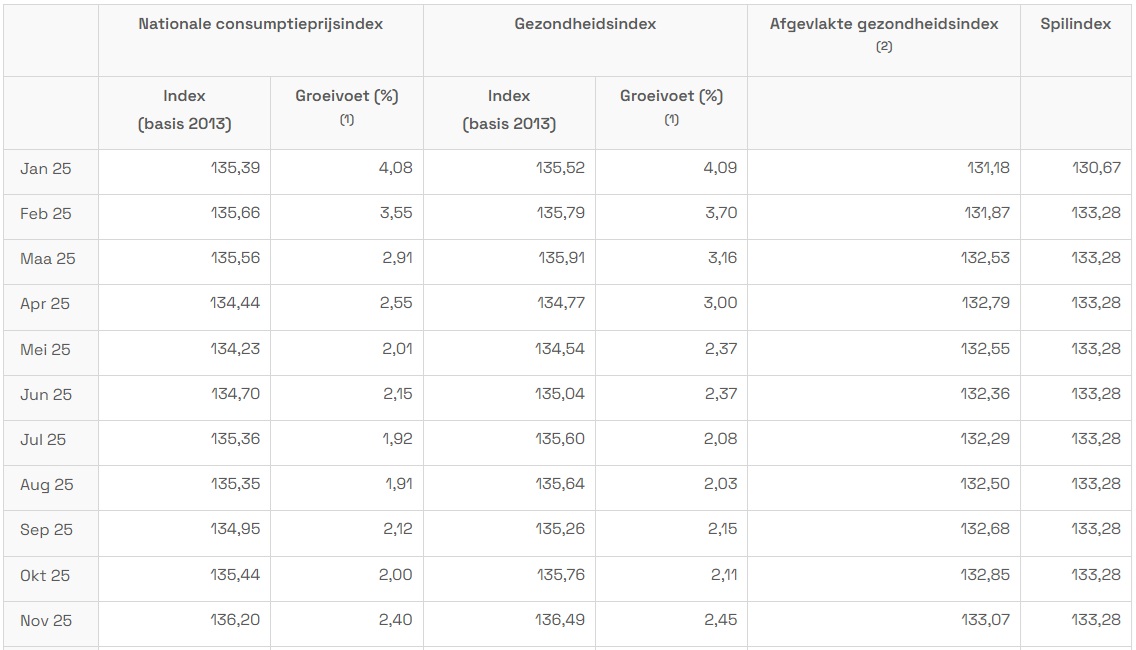 De afgevlakte gezondheidsindex is overschreden in maart 25, de lonen van april 25 stijgen met 2%!!!